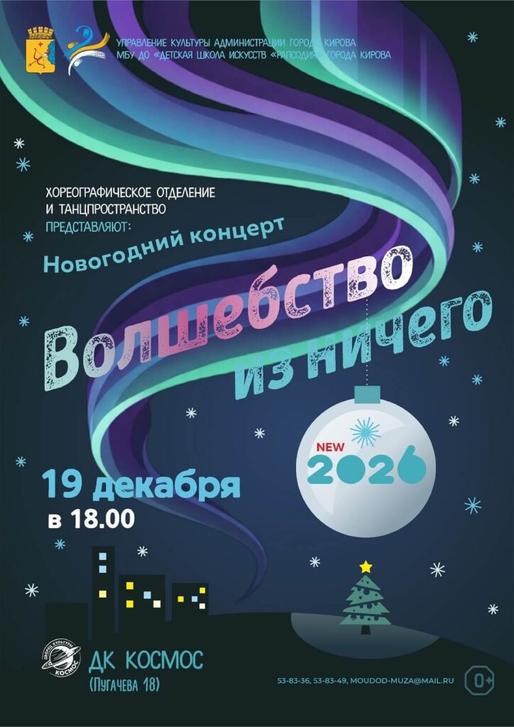 Дорогие друзья! Приглашаем вас окунуться в атмосферу праздника, чуда и отличного настроения на новогоднем концерте «Волшебство из ничего» хореографического отделения МБУДО «ДШИ «Рапсодия» г. Кирова!