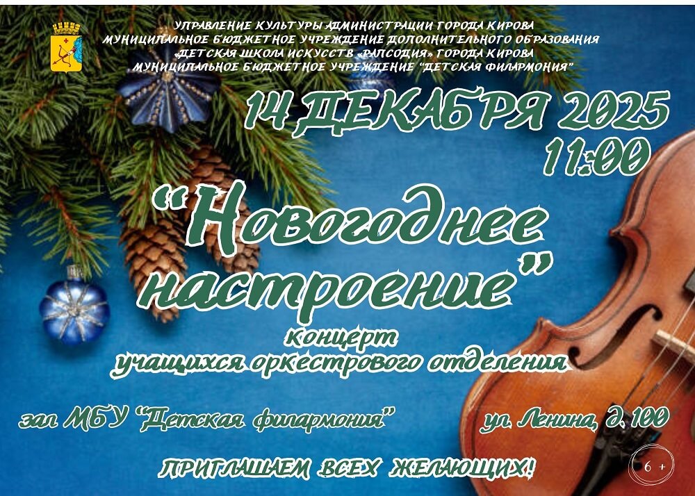 Приходите всей семьей, чтобы насладиться прекрасной музыкой и создать себе новогоднее настроение!