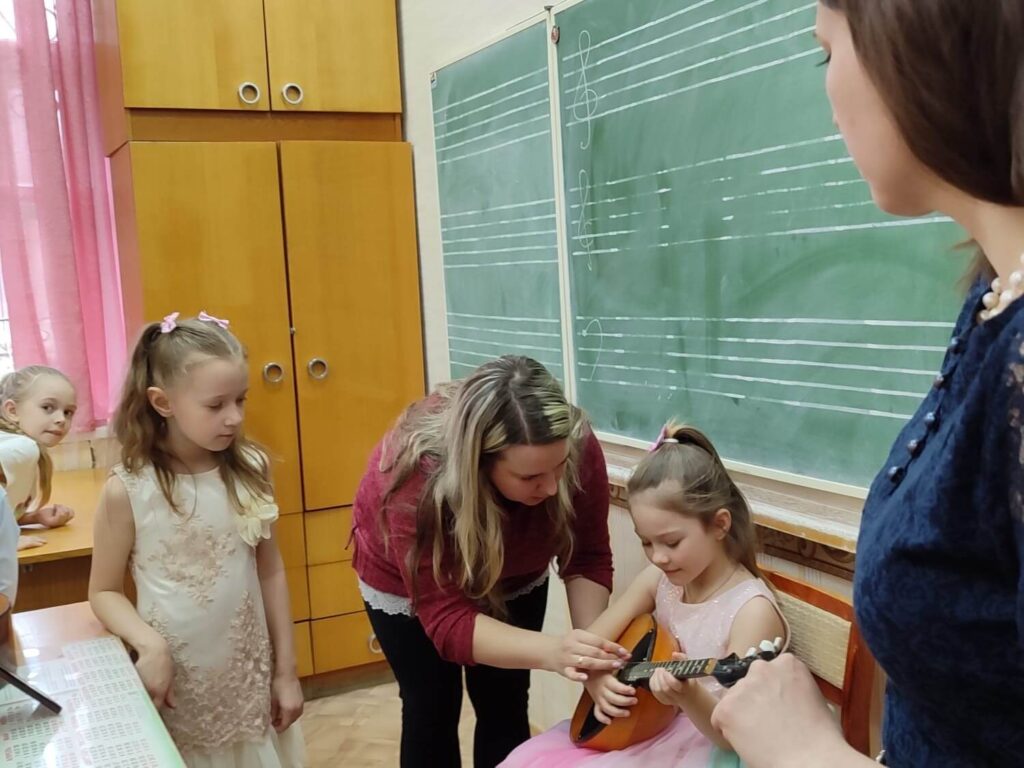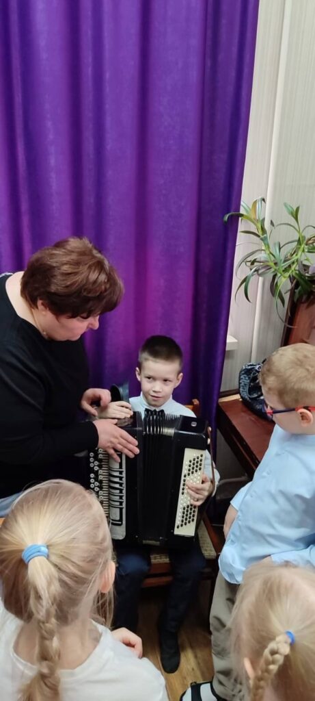 Перед концертом для маленьких гостей была организована экскурсия по школе, во время которой ребята открывали для себя мир музыкальных звуков, и каждый из них имел возможность на некоторое время стать баянистом, домристом, пианистом и скрипачом.