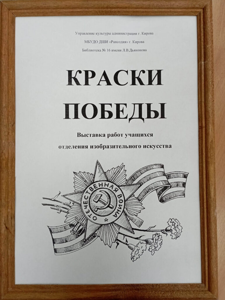 18 февраля 2025 года в 15:00 состоится открытие выставки работ учащихся отделения изобразительного искусства «Детской школы искусств «Рапсодия» г. Кирова – «Краски Победы».
